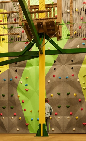 At its core, Peaksy features a first-floor bistro led by Chef Alejandro Castro (Saya Brasserie, Osh Del Mar), a rooftop lounge and observatory offering panoramic views and handcrafted mocktails, and a ladies-only café with a soft play area for children. The adventure zones include a three-level rope park and an 11-metre climbing wall, providing active, supervised fun while parents enjoy dining or relaxation.
